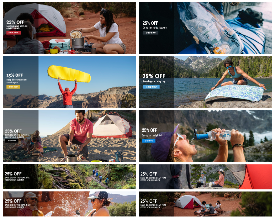 Product Detail Pages: image optimization, in-studio + lifestyle art direction, styling, post-production image selection, color correction, photo manipulation, user experience and user interface design. Completed image requests to retailers such as Amazon and REI. Approved REI’s PDP imagery, copy, and technical specs.